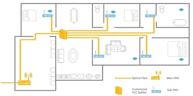 Le FTTR, ou Fiber To The Room, est une technologie récente d’extension de la fibre optique jusqu’aux différentes pièces d’un logement ou d’un bâtiment. Contrairement à la fibre classique qui s'arrête au niveau de la box (souvent installée dans le salon), le FTTR permet de déployer des fibres optiques secondaires dans chaque pièce, garantissant ainsi une connexion haut débit stable et homogène partout dans l’habitation.